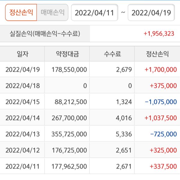 4월 둘째 주 수익