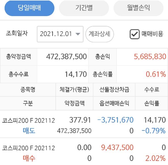 12월 첫날 선물수익