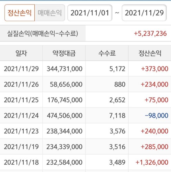 11월1일부터 29일까지 수익입니다.