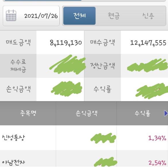 7.26일 현물 수익