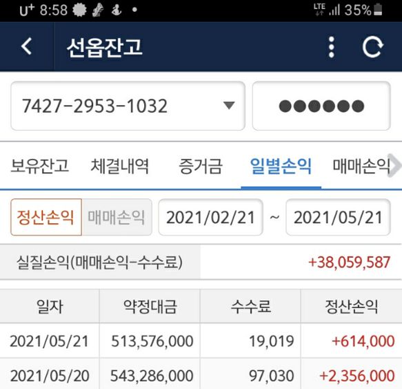 선물반 가입하고 3개월수익입니다