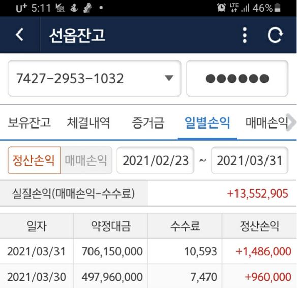 한달 조금 넘는기간동안 1350만원 수익봤습니다