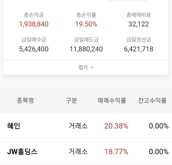 JW홀딩스,혜인 손익
