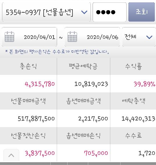 오늘까지 총수익금 4월동안 430만입니다.