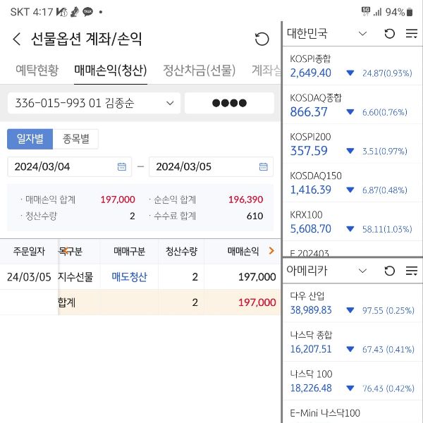 퀀트 개인 운용 성과 및 회원님이 보내주신 실제 계좌 내역입니다.