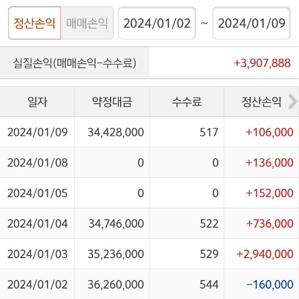 1월 한주간 수익으로 전환하면서
