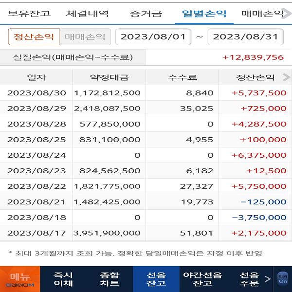 퀀트 개인 운용 성과 및 회원님이 보내주신 실제 계좌 내역입니다.