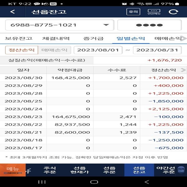 퀀트 개인 운용 성과 및 회원님이 보내주신 실제 계좌 내역입니다.