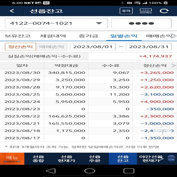 퀀트 개인 운용 성과 및 회원님이 보내주신 실제 계좌 내역입니다.