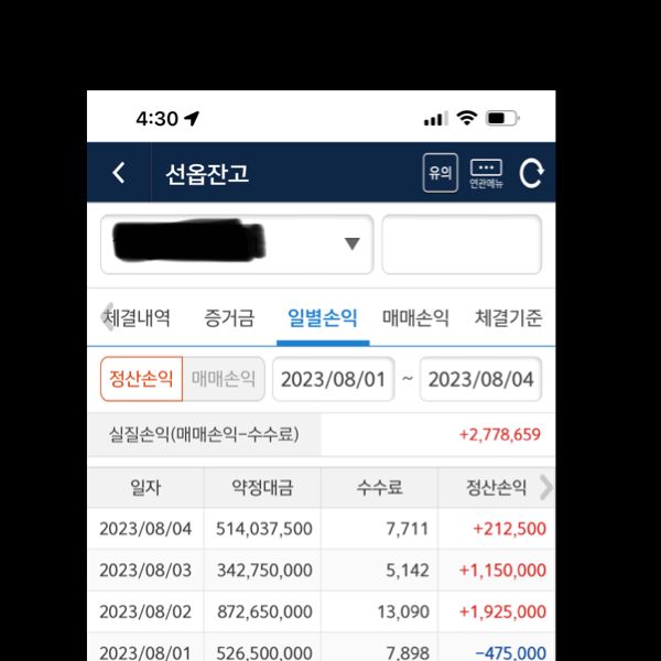 (선물) 8월1주차 수익
